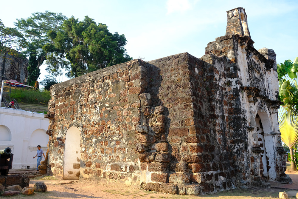 A short but steep walk up the stairs beside the gate leads to the ruins of St. Paul’s Church. During its nearly 500-year-old history, this building functioned as a cathedral, a fortress, a lighthouse, and a gun powder house. The ruin doesn’t have a roof anymore, but the walls are still standing. In the courtyard lies a Dutch graveyard with impressive tombstones. The Dutch and English ruled here for a shorter and longer time after the Portuguese started their trading activities first.
