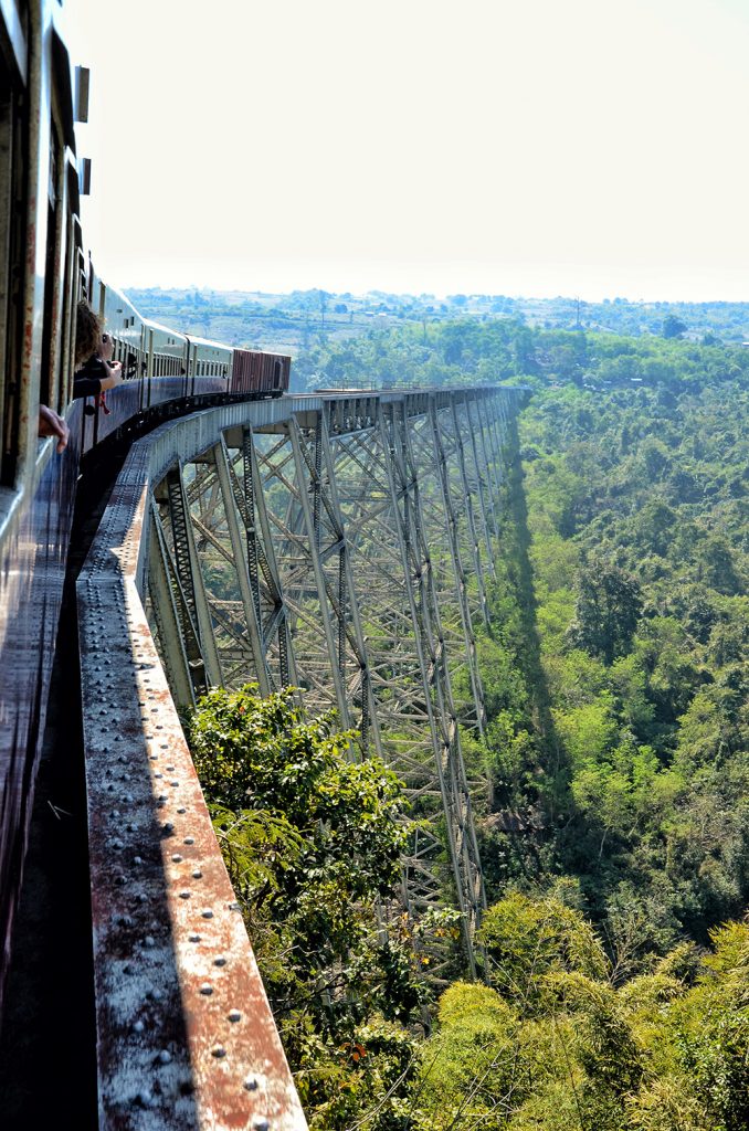 The train crosses a canyon via the Goteik viaduct which was built during British colonial times. While crossing this bridge was not quite as thrilling as the guidebooks made me believe, this journey is more about seeing the beautiful landscapes passing you by.