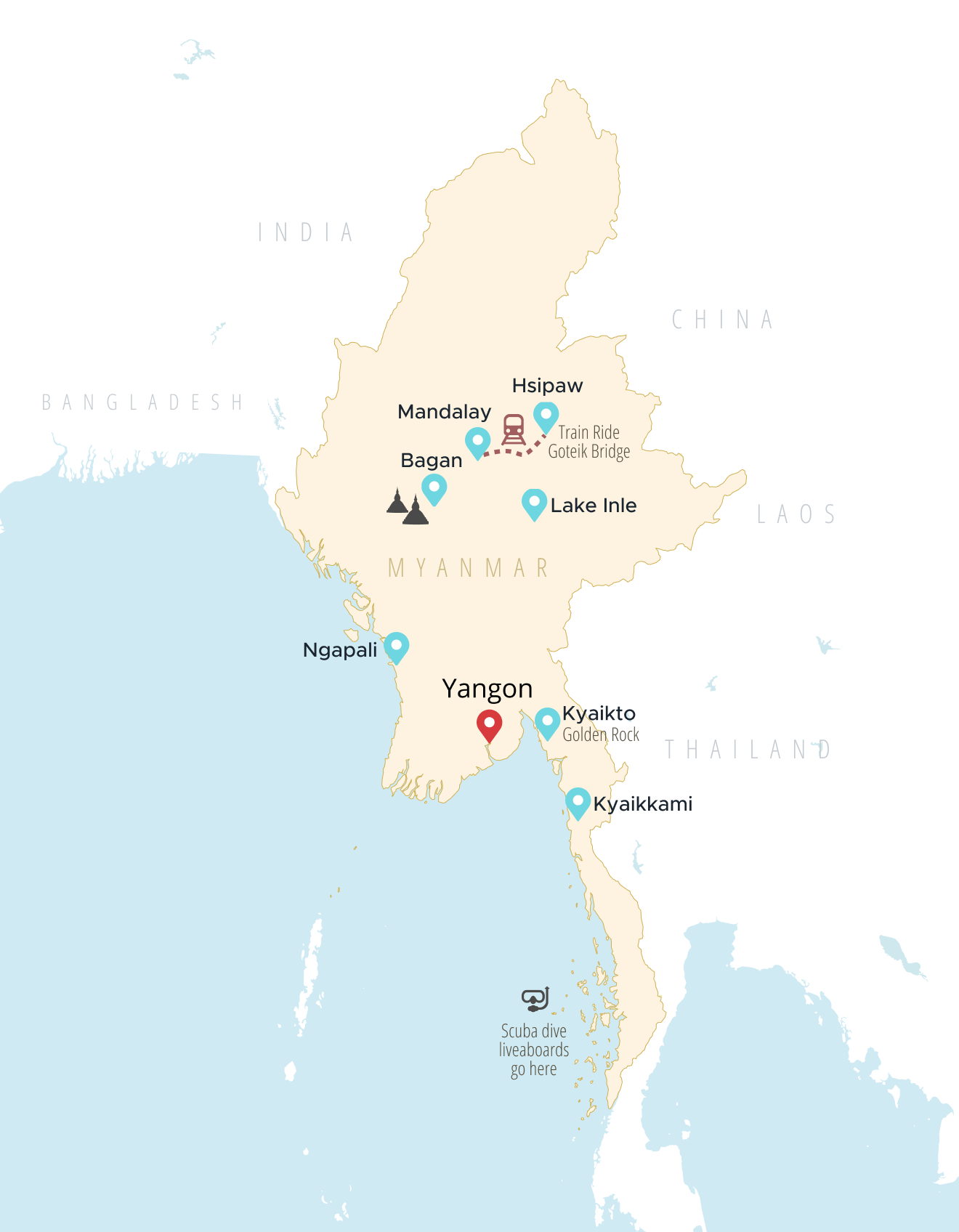 Heya. Something I did was fly into Yangon from BKK, overland it to Mandalay/Bagan, and then fly back out from Mandalay, so that I didn’t have to backtrack. Buses are pretty comfortable and will get you anywhere. If you have a chance to take a train, I recommend that too, just for the experience of people-watching and being on a really old train.