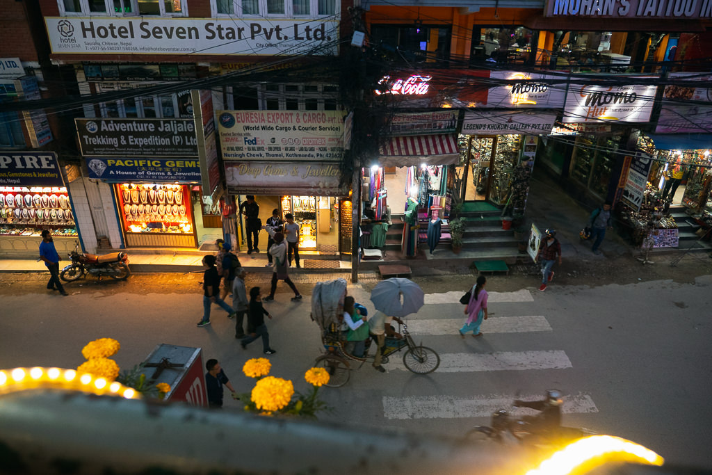 In Kathmandu, keep your eyes on the streets’ upper levels to see if there are any rooftop terraces or balconies. It’s fun to grab a table at one of these upper-level joints!