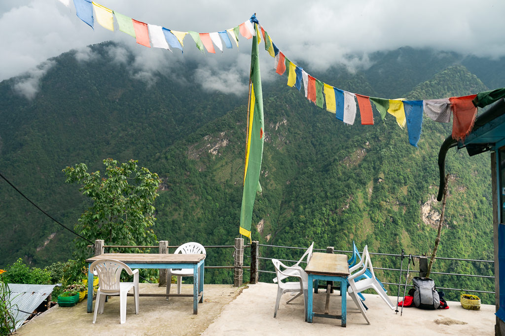 Small villages or colourfully painted tea houses decorated with Tibetan prayer flags make for key waypoints. The multi-coloured flags are used to bless the surrounding area, believed to be spreading good vibes carried by the wind. Picturing this can help keep your spirits up as you tackle a difficult ascent.