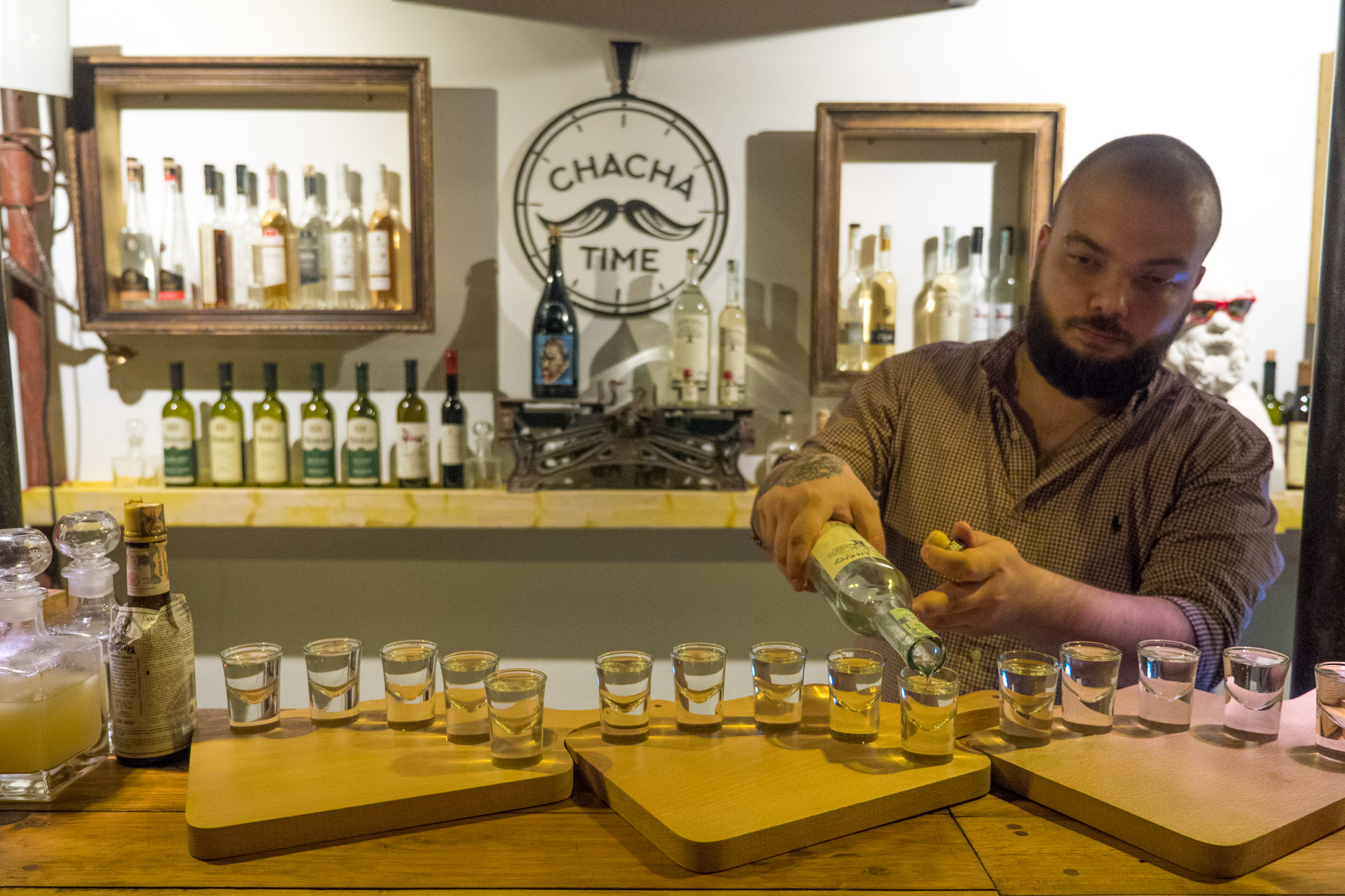 My friend and I stepped inside for just a little nightcap on our way home, but the staff insisted on us ordering a 5-glass sampler menu instead. No matter, as the bar’s owner Vlad is super knowledgeable and can tell you loads of interesting Chacha facts. The sampler menu didn’t hit us as hard as I’d feared, and we finished the night with another chacha cocktail chaser.