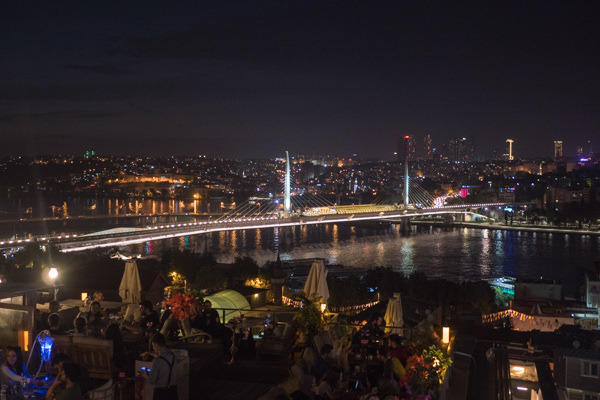 There was a huge queue to go up the tower which I wasn’t too motivated to join. Luckily, I spotted a nice rooftop terrace inside the Anemon Galata Hotel [map], from where I could get panoramic views of the tower as well as the Bosphorus river below.