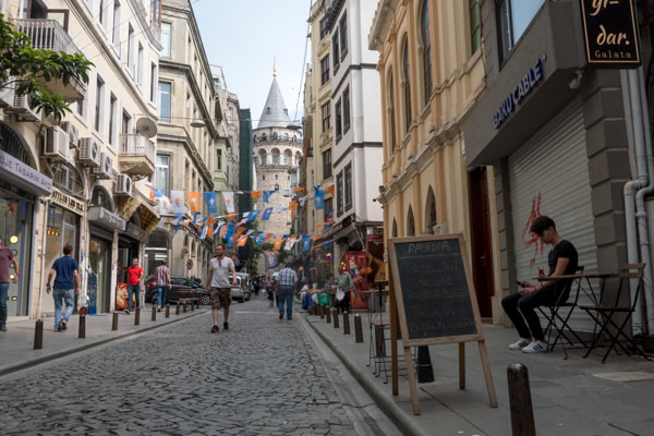 It turned out to be Galata Tower. A quick search informed me this was in fact built by the Genoans in the 14th century. The republic of Genoa (the northwestern bit of Italy) was once a trading nation that rivaled Venice in its reach and influence, and they built numerous trading posts and colonies around the Mediterranean and Black Sea. Galata Tower was the centerpiece of their Constantinople colony.