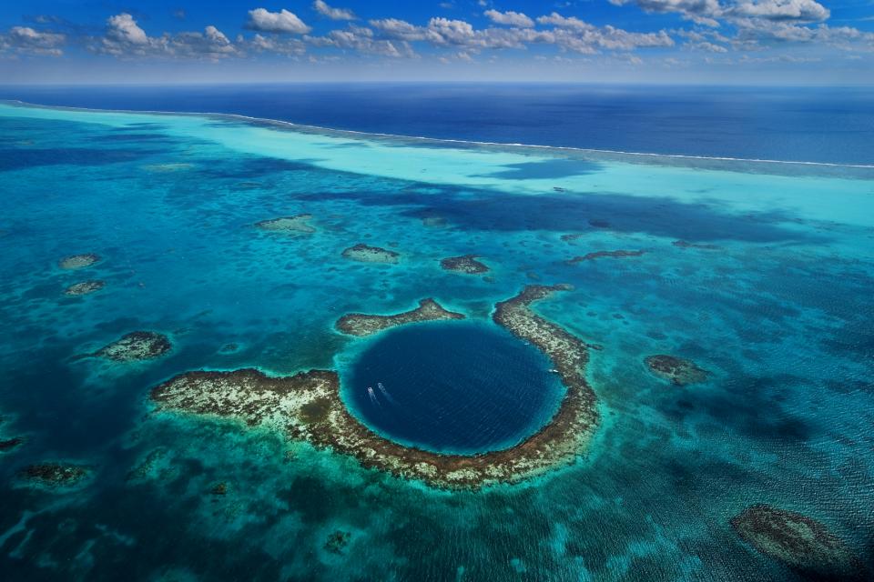 The Great Blue hole is a giant marine sinkhole off the coast of Caye Caulker which forms part of the Belize Barrier Reef reserve system and is a UNESCO world heritage site.