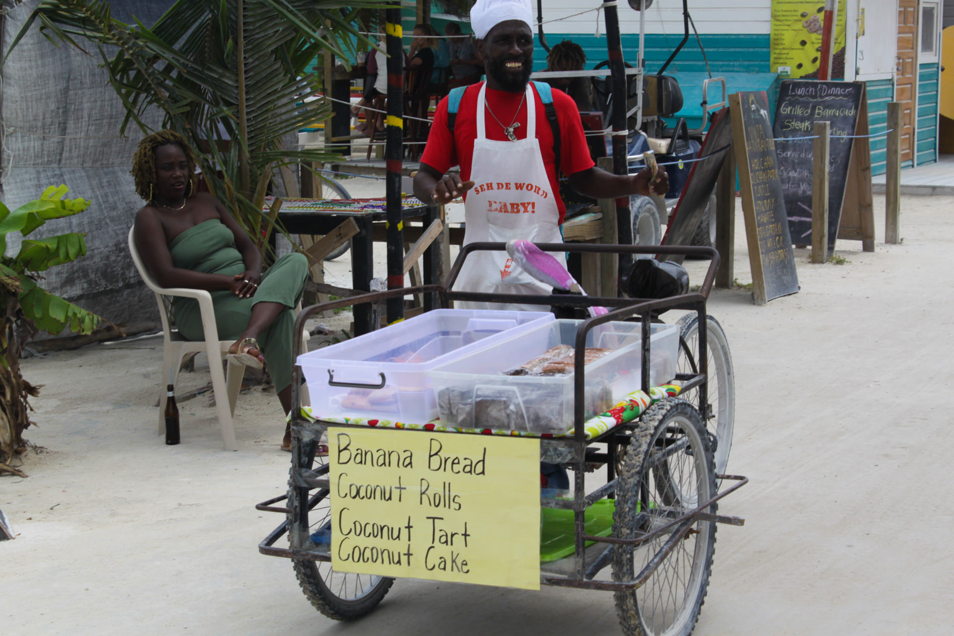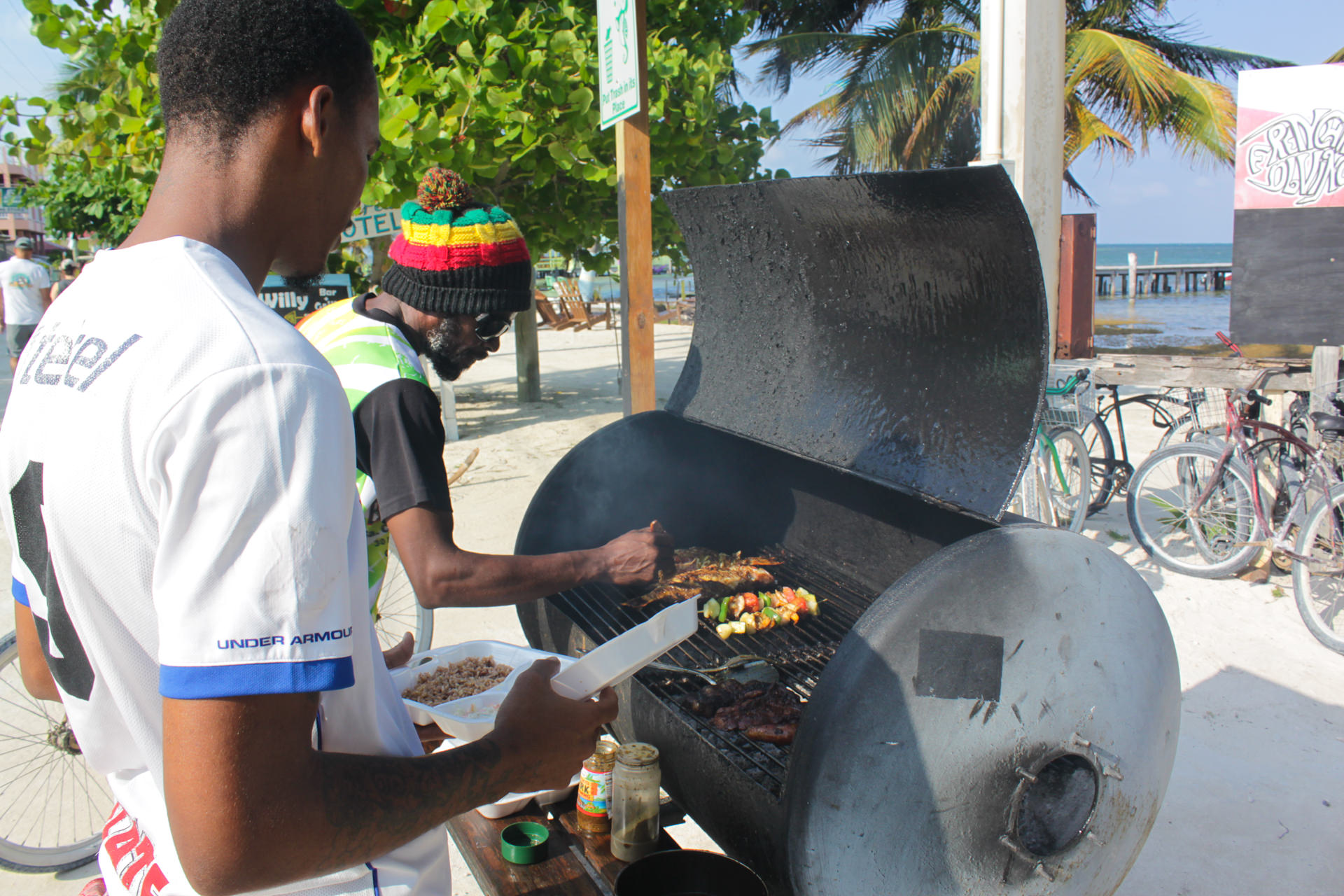 Two of the best Belize street food places can be found right next to each other directly opposite the Caye Caulker sign: