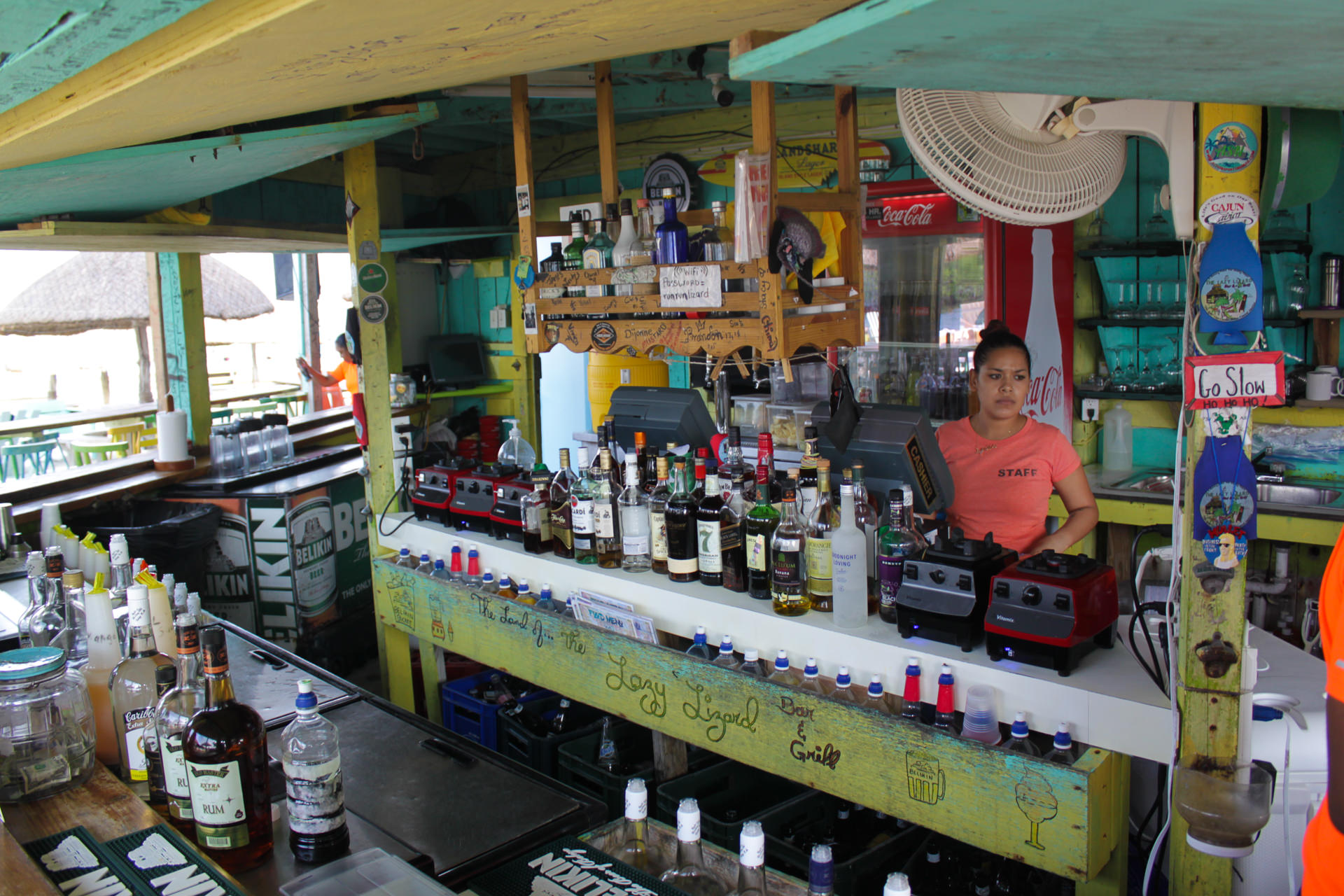 If you want to save money and drink in the hostels, beers in the shops cost 3.50 Belize Dollars each and there are no multipacks or deals. All the grocery stores on the island are also owned by the same company, so there really is no point shopping around.