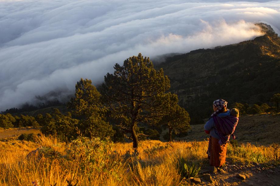While we were some of just a handful of people on the mountain before, lots of hikers now greet us on their way up. Most of them are Guatemalan families wearing traditional multi-coloured clothes and carrying portable radios playing raggaeton and bachata. Suddenly this mountain—which had felt so cold and ever so slightly creepy at night—is now utterly lively and colourful.