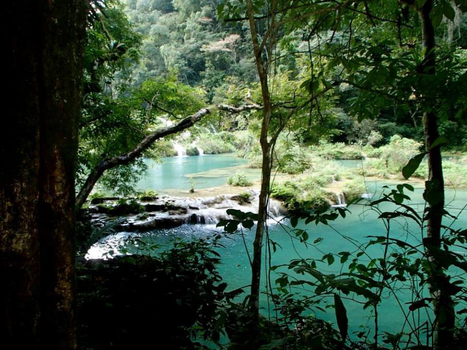 Semuc Champey is a little slice of paradise at the heart of Guatemala’s jungles that is a bit difficult to reach: it takes a very bumpy ride by pick-up truck through dirt roads winding through the mountains.