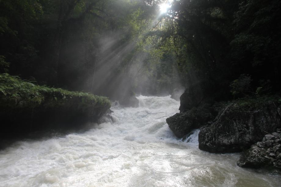 We got back down to the river by way of a slippery hike, and it’s here that a gorgeous waterfall revealed itself at the top of the pools. We were just there at the right time as rays of sunlight came through the trees giving the whole place an ethereal feel.