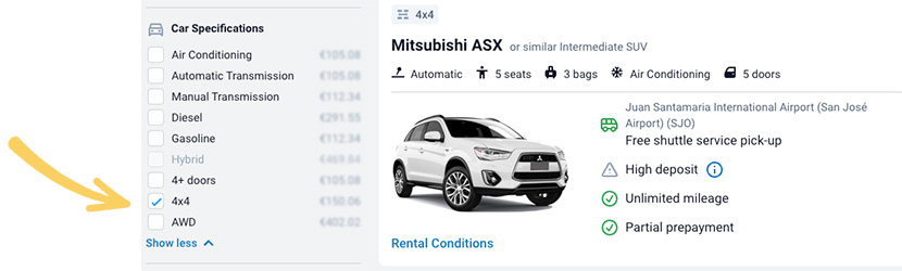 The main roads are asphalted and quite easy to drive, but you may still want to get a 4WD, particularly for the road between Monteverde and La Fortuna. It isn’t an absolute necessity during the dry season (December-April), but it’s recommended during the rainy season (May-November) when some roads can become muddy and slippery. If you’re feeling adventurous, having a 4WD can also let you go to some of those lesser-known, off-the-map spots.