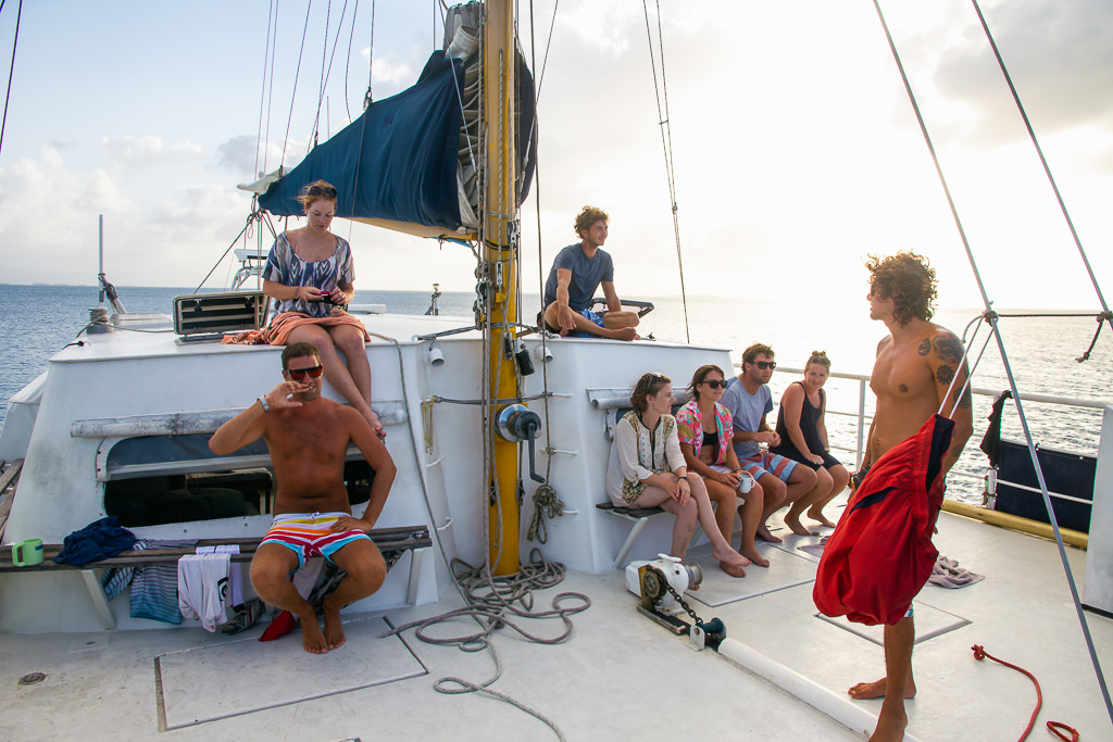 After meeting the dozen or so fellow passengers, we all got on board and found our designated sleeping areas. Mine was in the very front tip of one of the two hulls of the catamaran… a fairly claustrophobic but still comfortable enough arrangement.