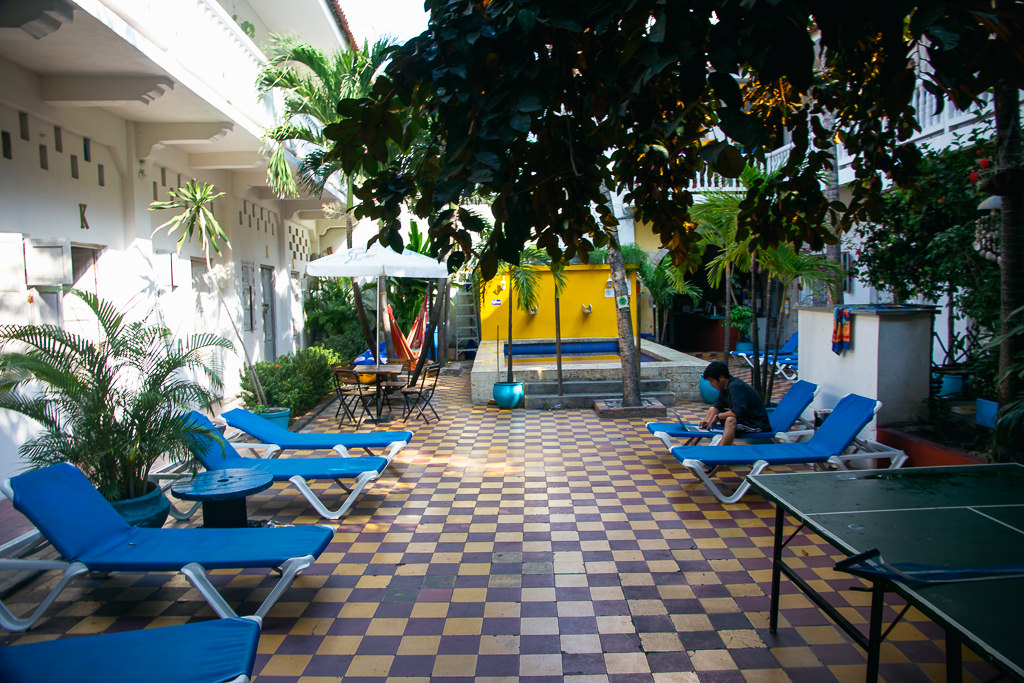 Based in a beautiful colonial mansion, the rooms are basic but clean and air-conditioned providing a much-needed break from the hot Cartagena days. You can savor an ice-cold beer with your friends, bask in the sun on the inviting patio, or take a dip in the pool to break up that Caribbean heat.
