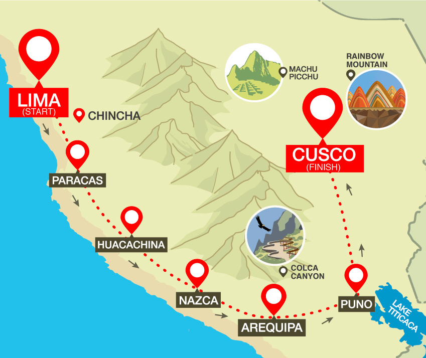 It’s important to mention that whilst you can find flights between certain Peruvian cities (such as Arequipa, Ica or Piura), the majority will need to stopover in Lima.