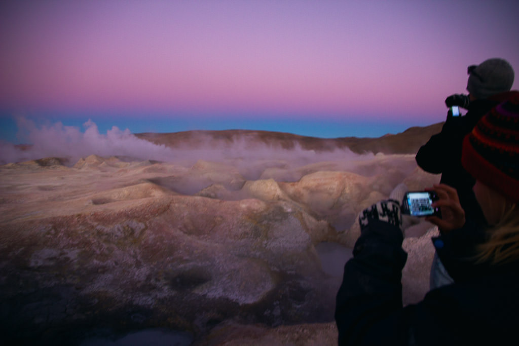 There are many geysers and geothermal steam vents in Atacama as well. When walking at sunset around the landscape with sulphuric gasses and boiling water bubbling up to the surface, I felt like I was in an alien world.