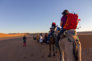 The tours go to the dunes of Erg Chebbi near the town of Merzouga, or in some cases to Erg Chigaga further south. The standard itineraries typically include a camel ride and overnight stay in the desert and stop at various sights in the High Atlas such as Ait Ben Haddou and the Dades Valley.