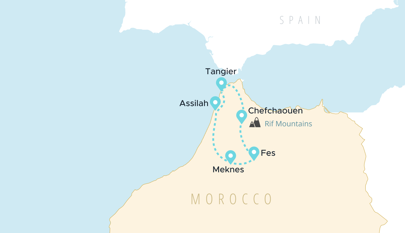 The north of Morocco makes for a great alternative to the typical Marrakech route. Tangier and Fez will give you a great city experience while the mountain town of Chefchaouen is a perfect base for exploring nature.