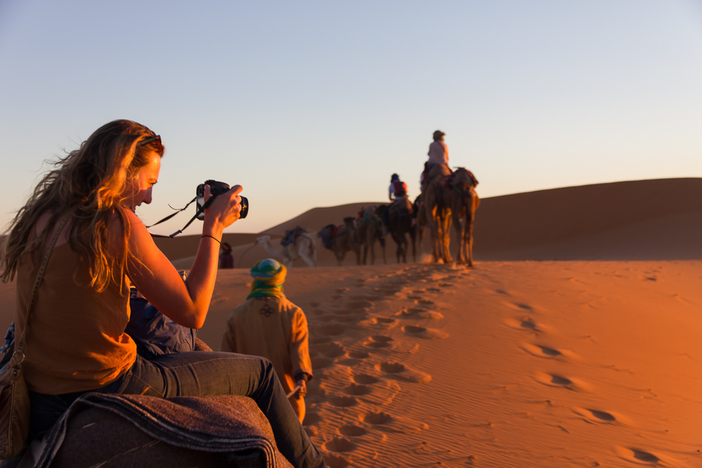 Countless local tour operators offer 2, 3 or 4 day trips between Marrakech and the Sahara desert. You can easily book these tours locally anywhere during your trip. They go to the dunes of Erg Chebbi near the town of Merzouga, or in some cases to Erg Chigaga further south. The standard itineraries typically include a camel ride and overnight stay in the desert, and stops at various sights in the High Atlas such as Ait Ben Haddou and the Dades Valley. The tours cover a lot of ground quickly, but they are not without their downsides.