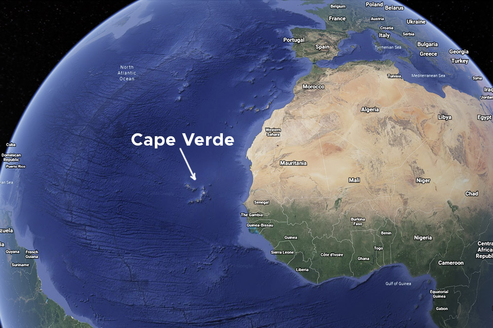 Cape Verde is a chain of ten islands in the Atlantic, just west of Senegal and Mauritania. The original Portuguese name of the country is Cabo Verde, meaning ‘green cape’, though most of the rugged islands consist of dark volcanic rock. It’s a small country, having only about half the surface area of Spain’s Canary Islands further north, or about one-and-a-half times that of Luxembourg.