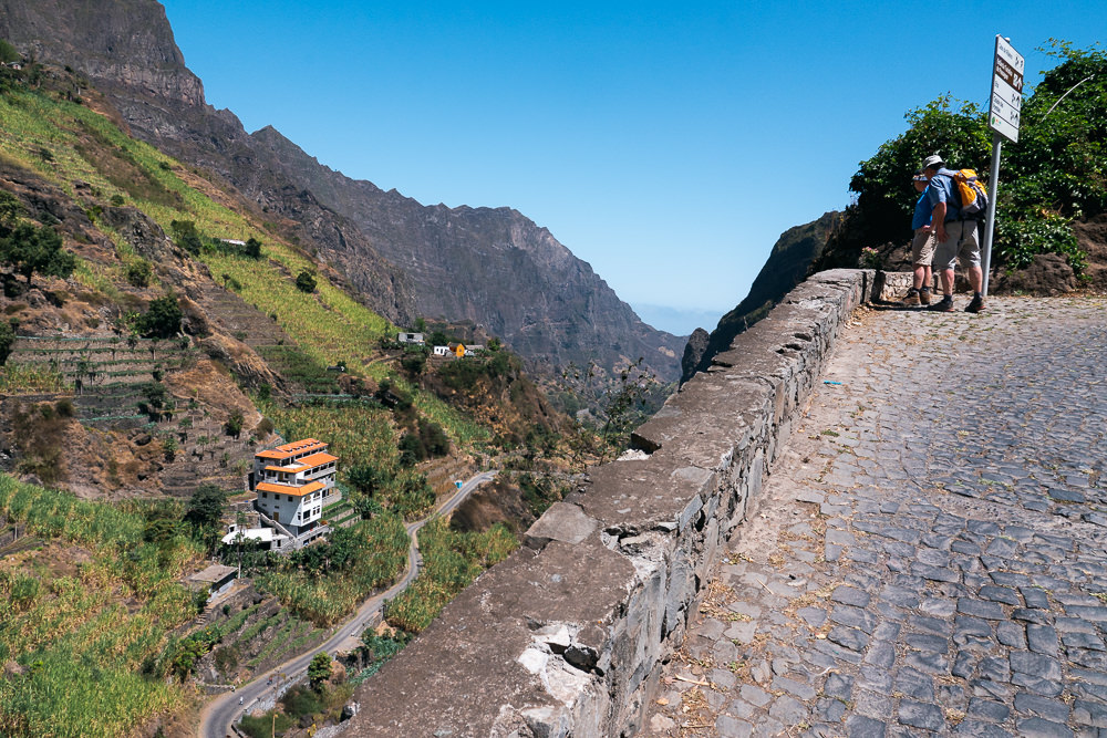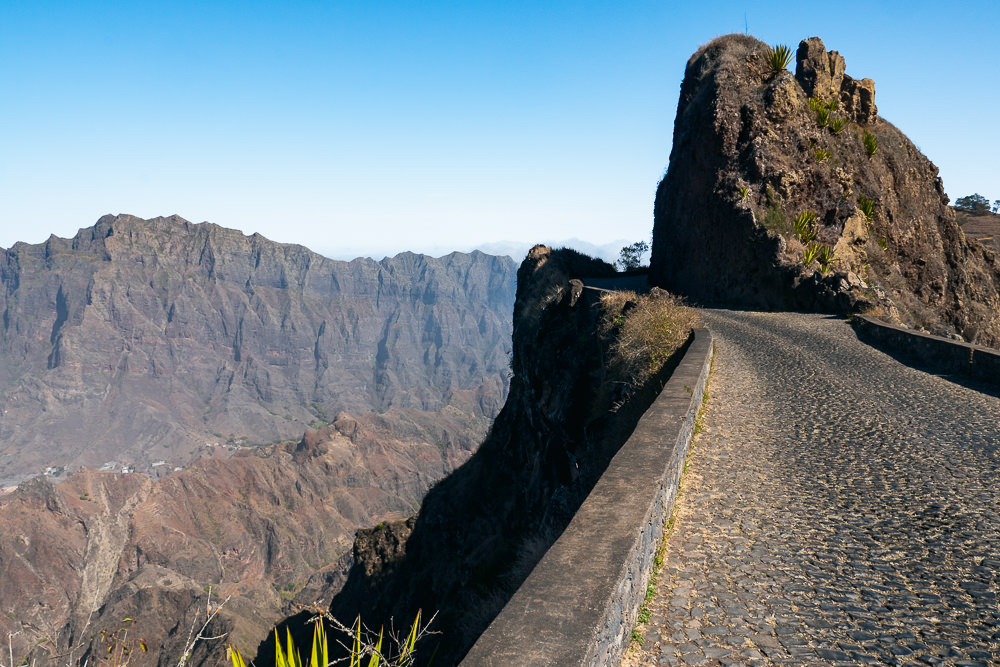 The Delgadim ridge is one of Santo Antão’s most impressive viewpoints. It’s here that the central mountain ridge becomes just barely wide enough to fit the old cobblestone road (the Estrada de Corda), with deep chasms on both sides.
