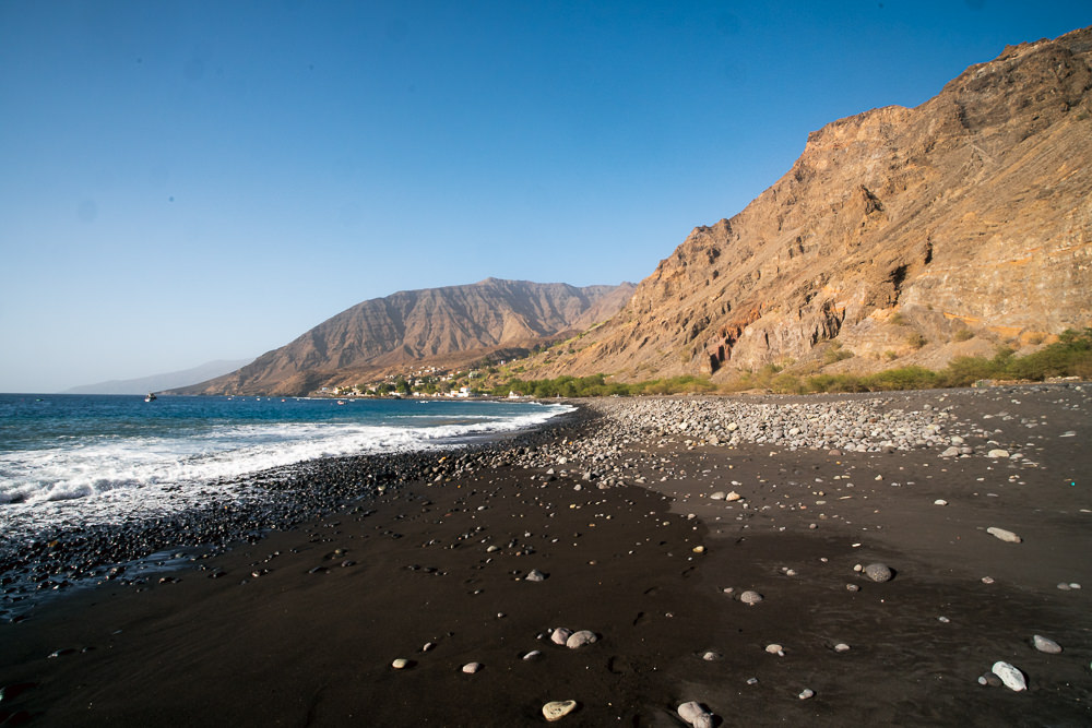 The beach in Tarrafal bay is a very scenic one, with a long stretch of volcanic black sand under a big gnarly cliff. It faces the sunset, so you can expect some magical moments as the sun goes down.