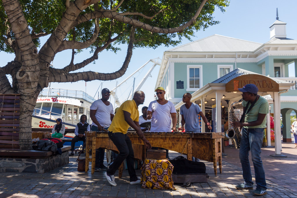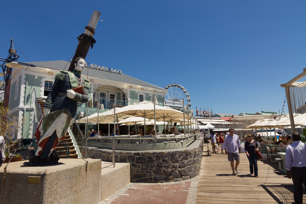 The V&A Waterfront is essentially one large commercial development that’s more or less separated from the rest of the city (and therefore very safe even at night). Its location next to the marina is nice I suppose, and the Table Mountain makes for a cool occasional backdrop, but there is nothing particularly unique about this place. It feels totally commercial; basically just a collection of promenades surrounded by hotels and shopping centers. When you see the ferris wheel in the background, you might even feel faintly like you’re in the Main Street of a theme park.
