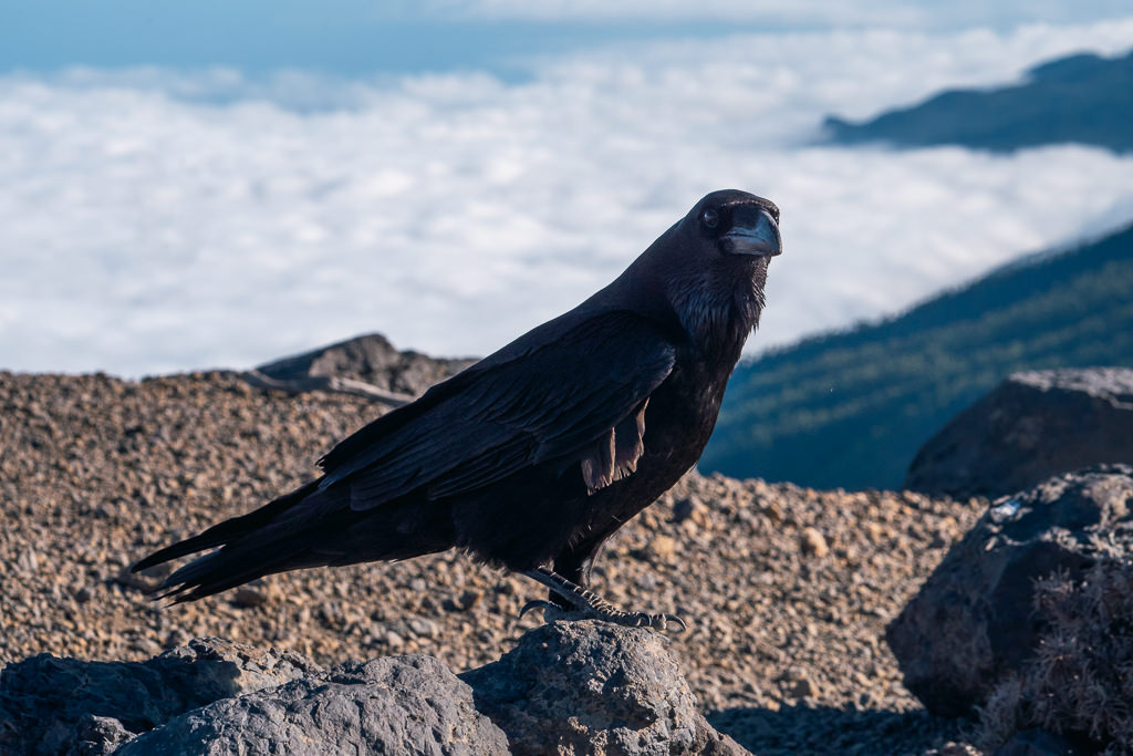 There is a cross at the peak where quite a few endangered Canarian ravens like to hang out. They sometimes follow hikers intently, but they are fortunately quite friendly.