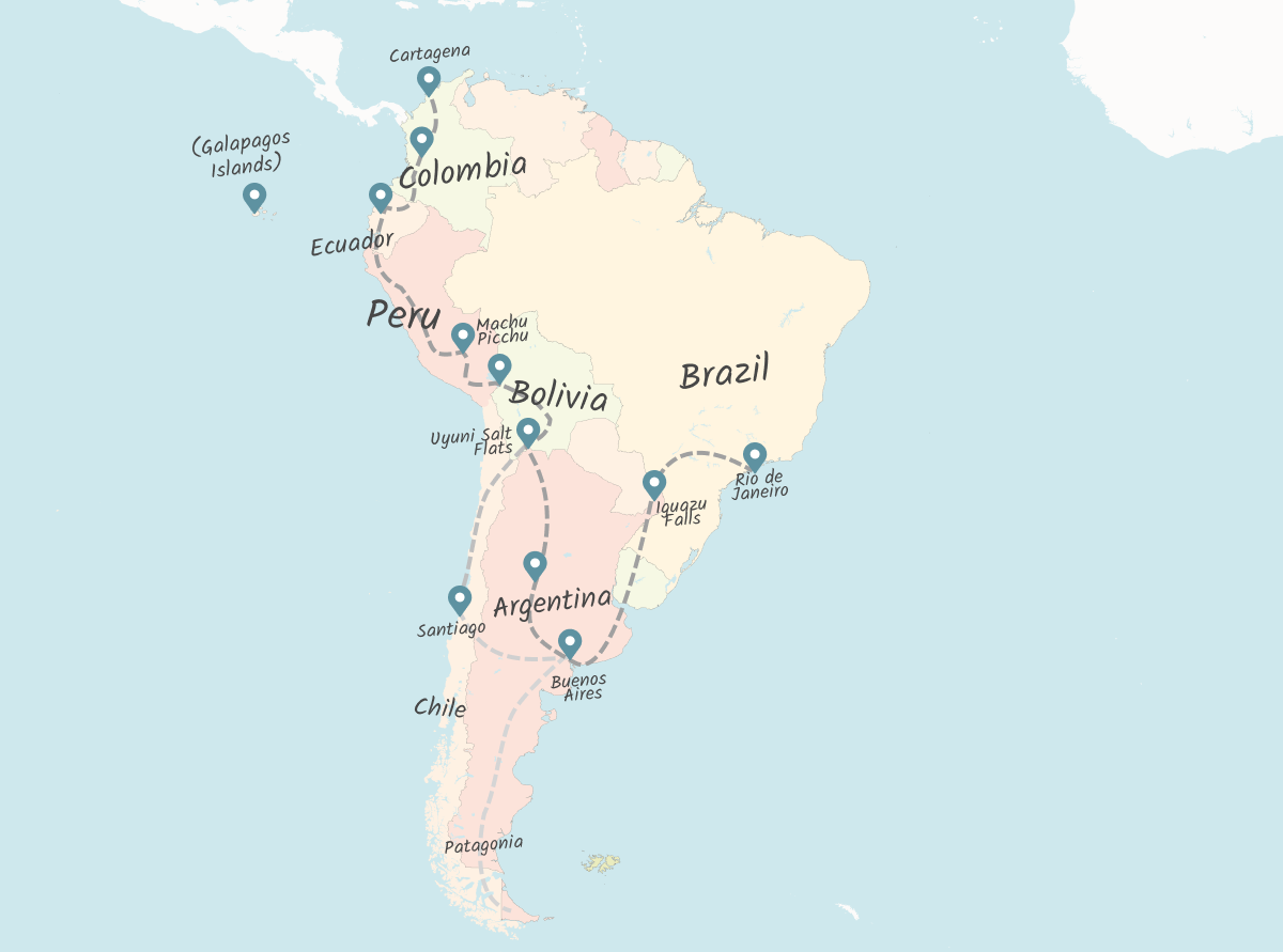 I still get traumatic flashbacks to the time I took a 20-hour non-stop bus from Buenos Aires to Iguazu! While Colombia, Ecuador, Peru, and Bolivia still have relatively compact circuits, the distances get a lot more hardcore once you get to Argentina, Chile, and Brazil.