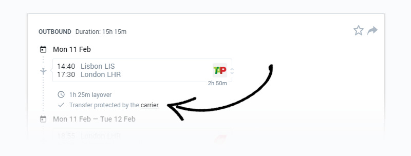 Then the flights are a normal one-package kind of deal. (It says “Transfer protected by the carrier.”)