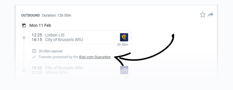 Then it means Kiwi got creative and put together two single tickets that normally aren’t sold together. (It says “Transfer protected by the Kiwi.com Guarantee”.