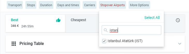 Kiwi or your other chosen site will now search for the cheapest flights at any time within the limits given.