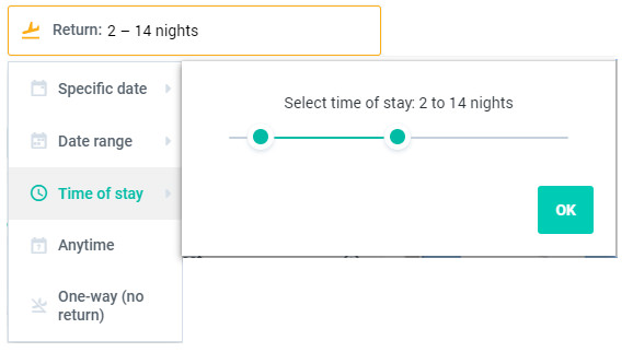 With your departure and destination airport selected, click Date Range and/or Time of Stay.