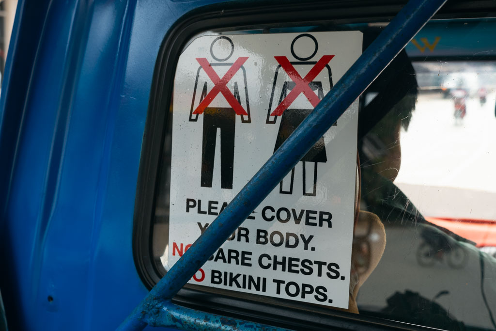 As a guest in each country, it’s a good idea to be aware of the local norms. For example, walking around in a bikini in Laos is akin to walking around butt-naked. This will either not be appreciated at all or appreciated way too much by certain locals. Similar norms exist in (parts of) Indonesia and Malaysia.